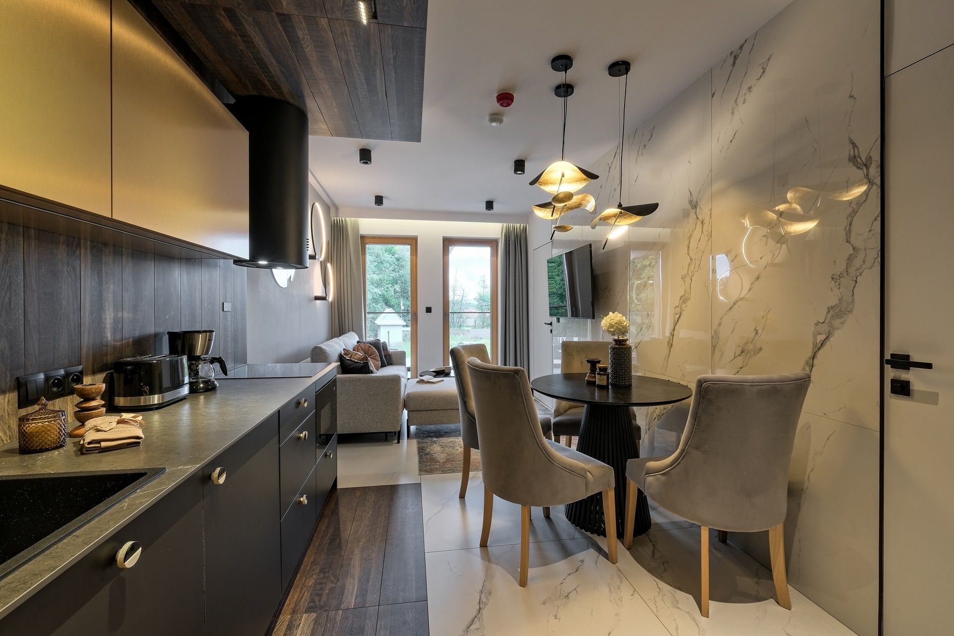 Nasz Apartament to oaza nowoczesności i komfortu, zapewniająca niezapomniane doświadczenia podczas pobytu w Białce Tatrzańskiej. Przekraczając próg apartamentu znajdą Państwo przestrzeń salonu, połączoną z funkcjonalnym aneksem kuchennym, gdzie elegancja i funkcjonalność łączą się w harmonijną całość. Przestronny salon zachęca do relaksu po intensywnym dniu, a w pełni wyposażony aneks kuchenny umożliwia przygotowanie potraw w dowolnej chwili. Apartament składa się również z przytulnej sypialni, zapewniającej spokojny sen i pełen wypoczynek. Łazienka urządzona w nowoczesnym stylu jest miejscem relaksu i odprężenia.