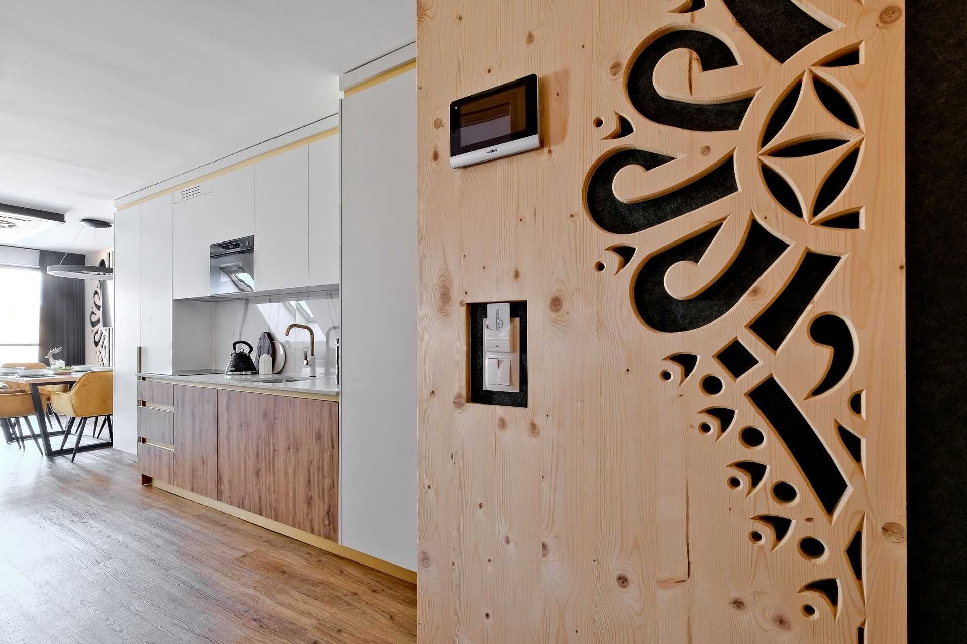 Główne atuty mieszkania, to przede wszystkim wysoki standard przy wykorzystaniu naturalnego drewna i kamienia, oraz funkcjonalność dzięki licznym przeszkleniom oferującym naturalne światło i kontakt z naturą.
