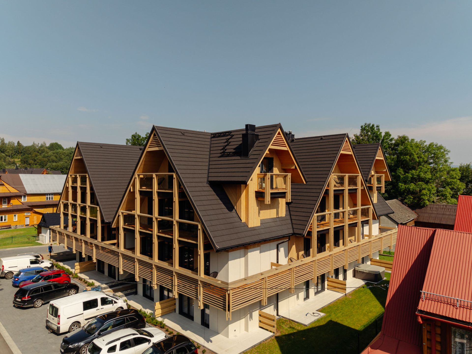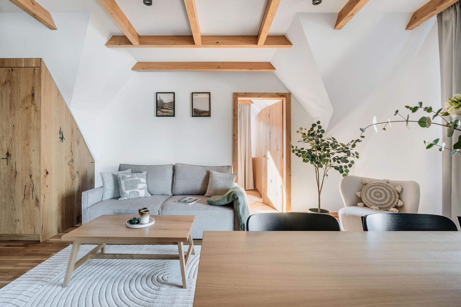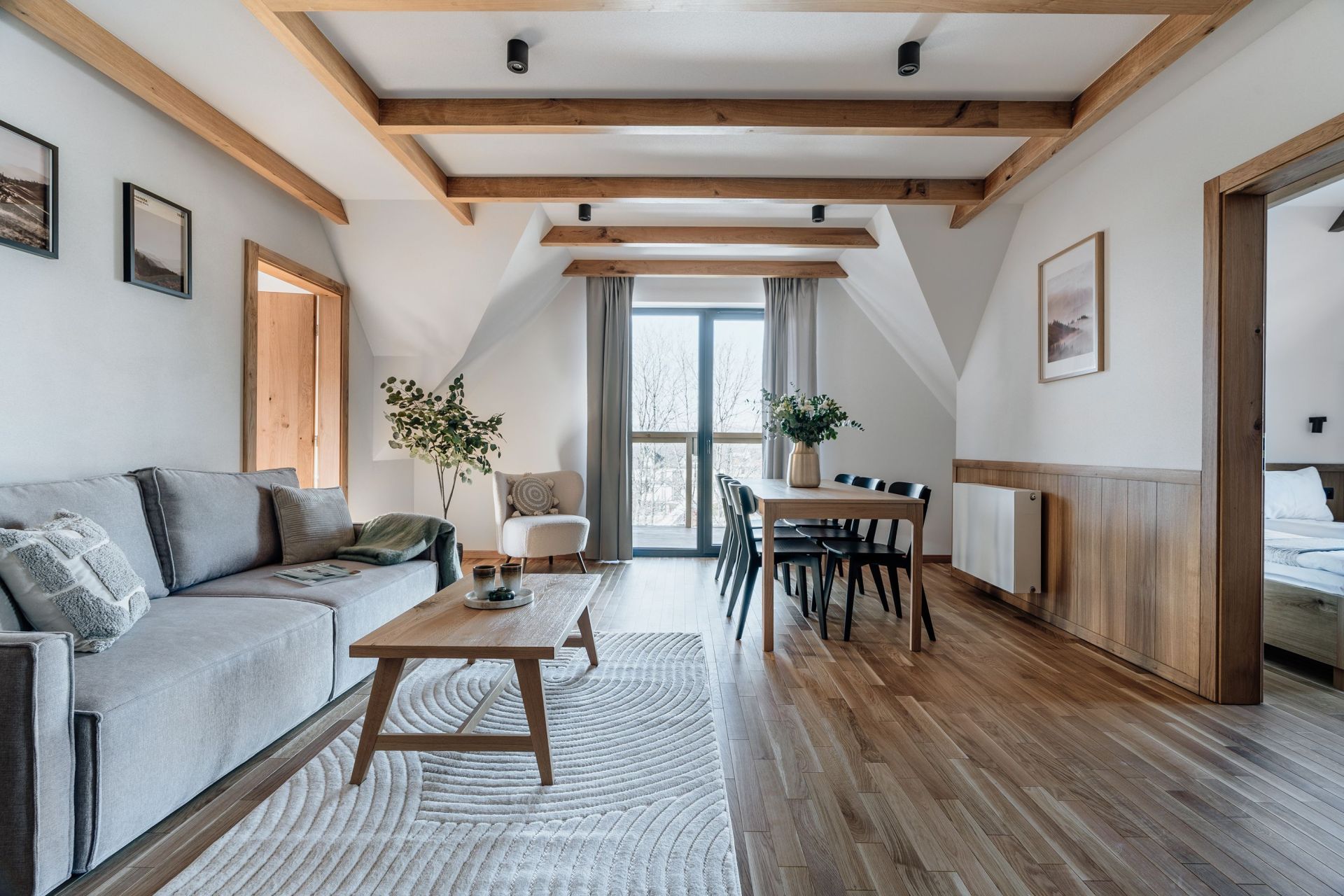 To przestronny apartament typu Deluxe z dwiema sypialniami, idealny dla rodziny lub grupy przyjaciół, którzy cenią komfort i swobodę wypoczynku. Apartament o powierzchni 45 m² składa się z dwóch oddzielnych sypialni z dużymi łóżkami podwójnymi, salonu z rozkładaną sofą, w pełni wyposażonego aneksu kuchennego z częścią jadalną oraz prywatnej łazienki z prysznicem. Do dyspozycji Gości jest również balkon , które stanowią idealne miejsce na relaks po dniu pełnym górskich aktywności. Całość została zaprojektowana z myślą o wygodnym, spokojnym pobycie w górach.