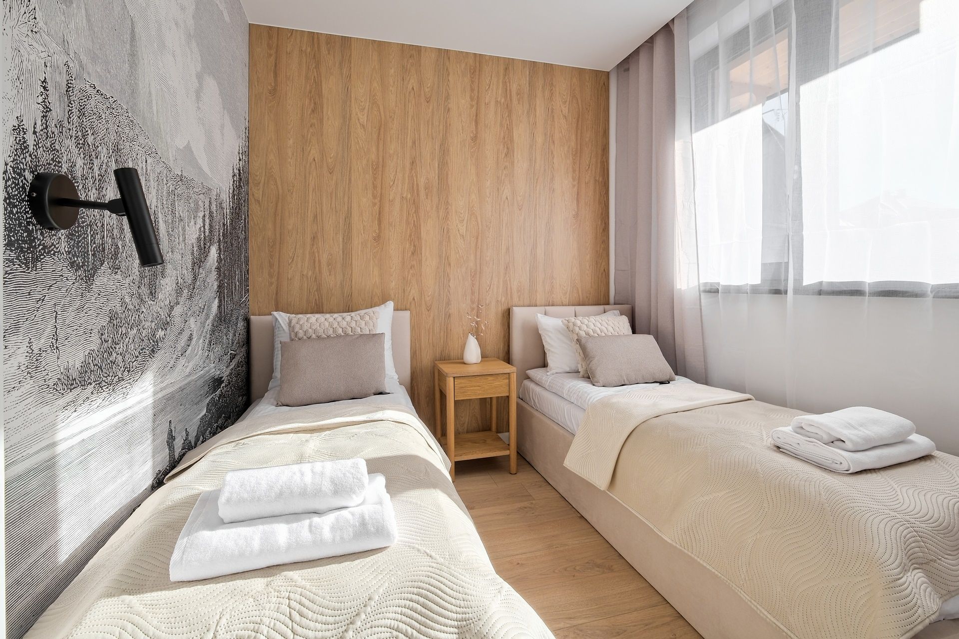 Apartament nr 2 dla 4 os. składa się z przestronnego salonu połączonego z aneksem kuchennym, 2 oddzielnych sypialni i łazienki. Apartamenty Małe Białczańskie są perfekcyjną bazą wypadową dla miłośników jazdy na rowerze, zwłaszcza dla tych, którzy chcą odkrywać urokliwe trasy wzdłuż Dunajca i w okolicach Jeziora Czorsztyńskiego, znane jako Velo Dunajec i Velo Czorsztyn.