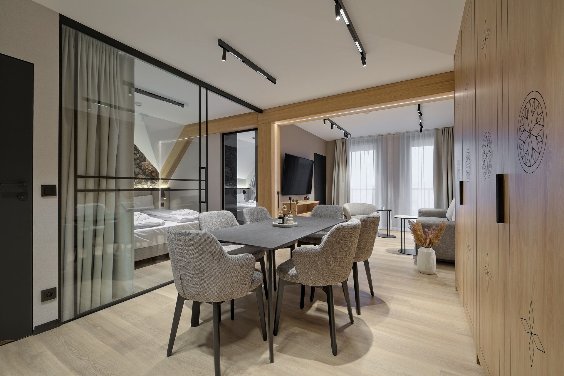 Zapraszamy do nowo otwartego obiektu w sercu Białki Tatrzańskiej, idealnego na wypoczynek w górach. Nasz apartament oferuje przestronny salon z aneksem kuchennym, przytulne sypialnie, elegancką łazienkę oraz duży taras. Apartament posiada dwie oddzielne sypialnie, które zapewniają pełną prywatność. Jedna z nich wyposażona jest w duże okno balkonowe, prowadzące bezpośrednio na przestronny balkon, co gwarantuje doskonały dostęp do naturalnego światła oraz świeżego powietrza. To wyjątkowe miejsce łączy w sobie luksus i komfort, zapewniając intymność i relaks po dniu pełnym atrakcji. W pełni wyposażony aneks kuchenny pozwala na przygotowanie posiłków, a przestronny salon stanowi idealne miejsce do wspólnego odpoczynku. Wieczorem możecie odprężyć się na balkonie. Nasza lokalizacja gwarantuje łatwy dostęp do lokalnych atrakcji, takich jak termy, stoki narciarskie oraz liczne szlaki turystyczne. Zarezerwujcie swój pobyt już dziś i odkryjcie magię Białki Tatrzańskiej w najlepszym stylu!