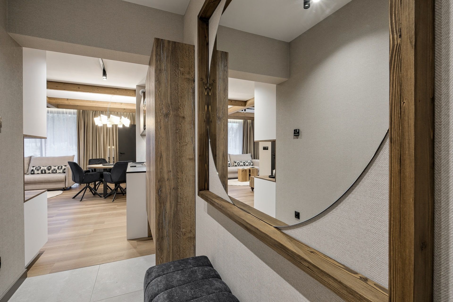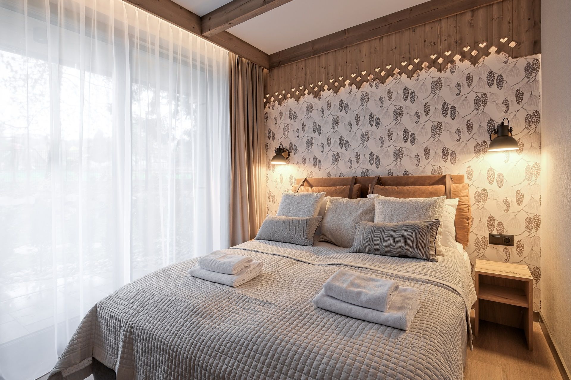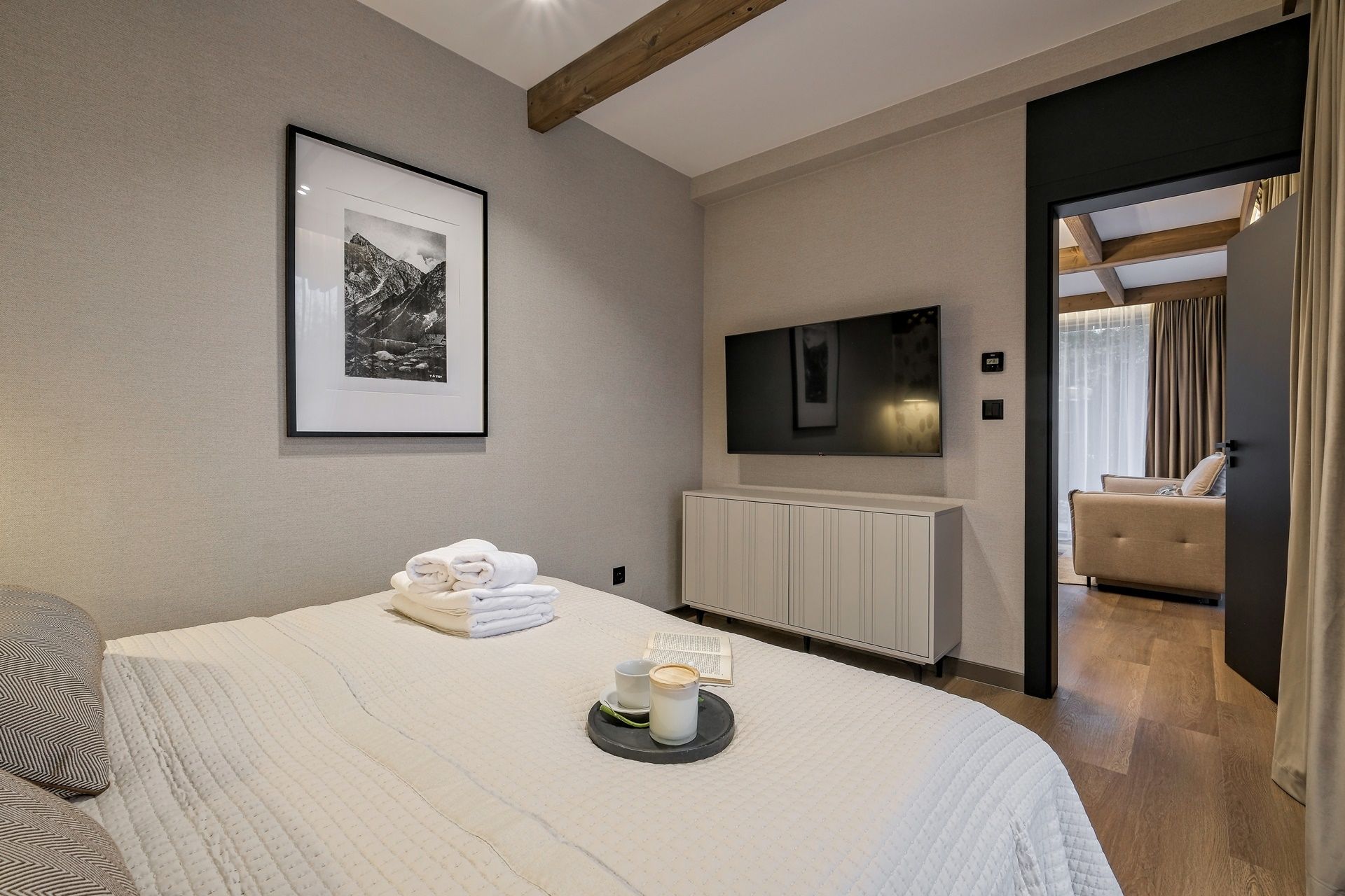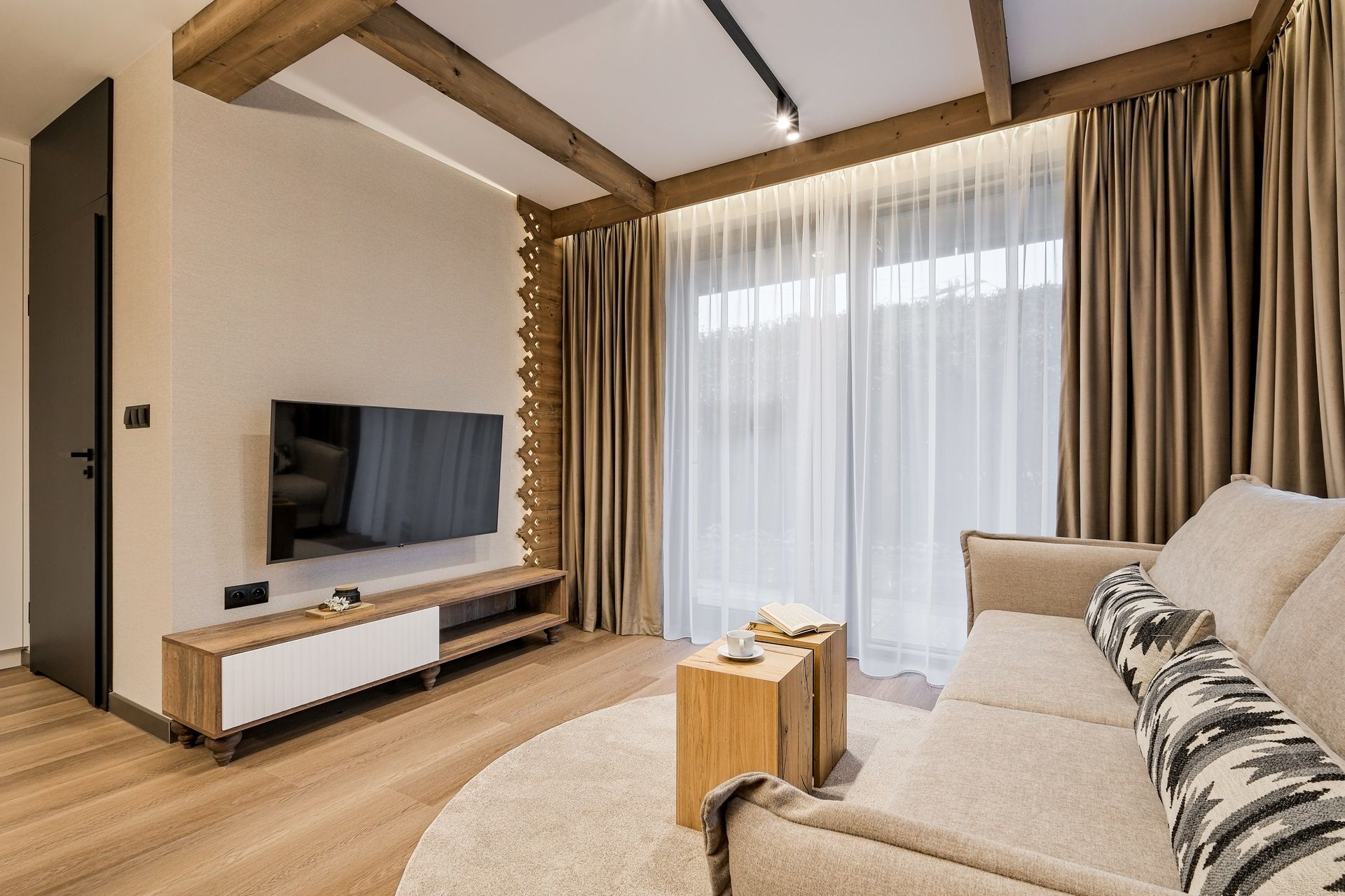 Apartamenty czteroosobowe w kompleksie Białka SKi to propozycja dla osób, które cenią sobie wysoki standard, przestrzeń oraz wnętrza urządzone ze smakiem i nawiązaniem do natury. Starannie zaprojektowane, utrzymane w stonowanej kolorystyce ziemi, z drewnianymi detalami i naturalnymi tkaninami – tworzą atmosferę sprzyjającą relaksowi i wypoczynkowi po dniu pełnym górskich wrażeń.