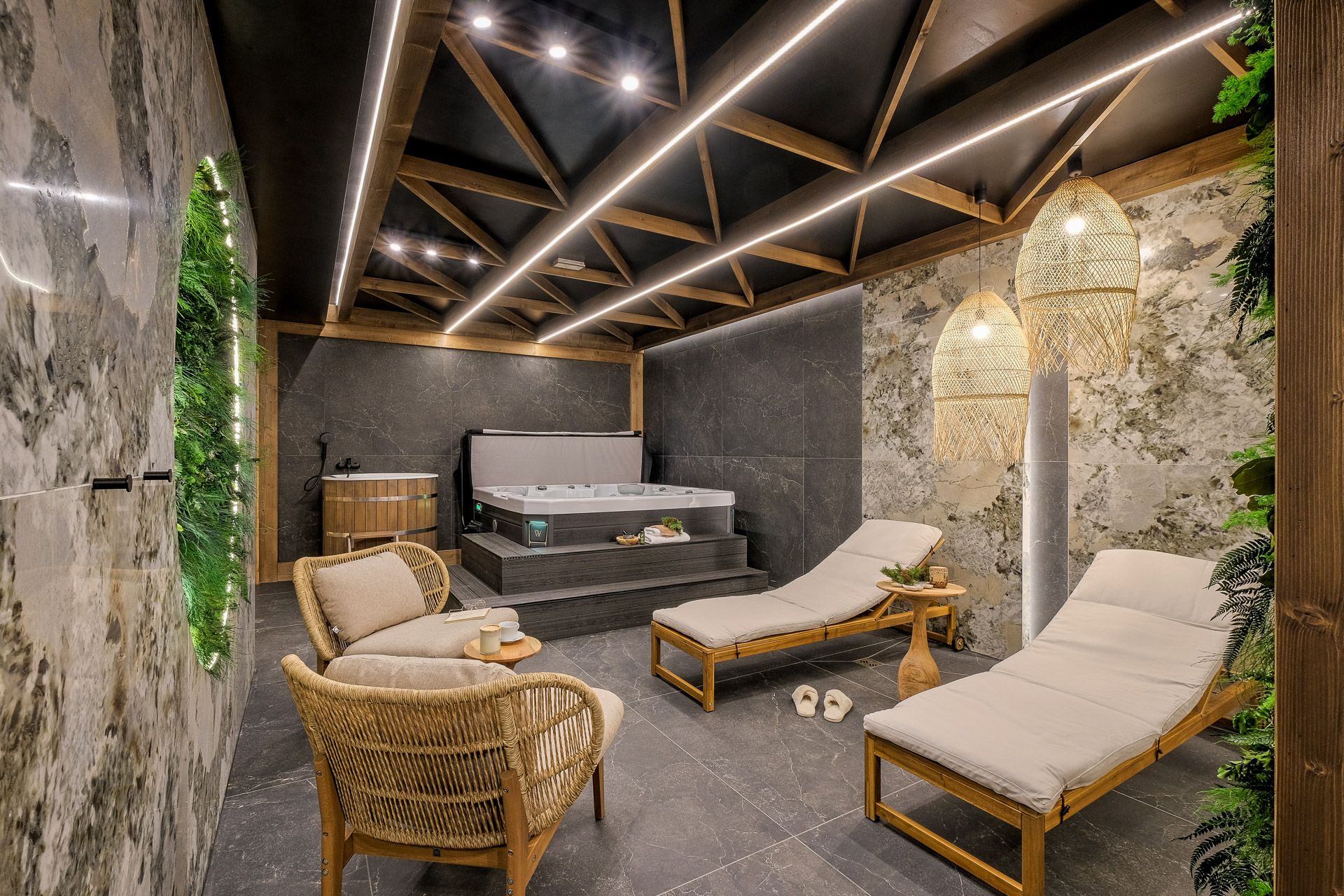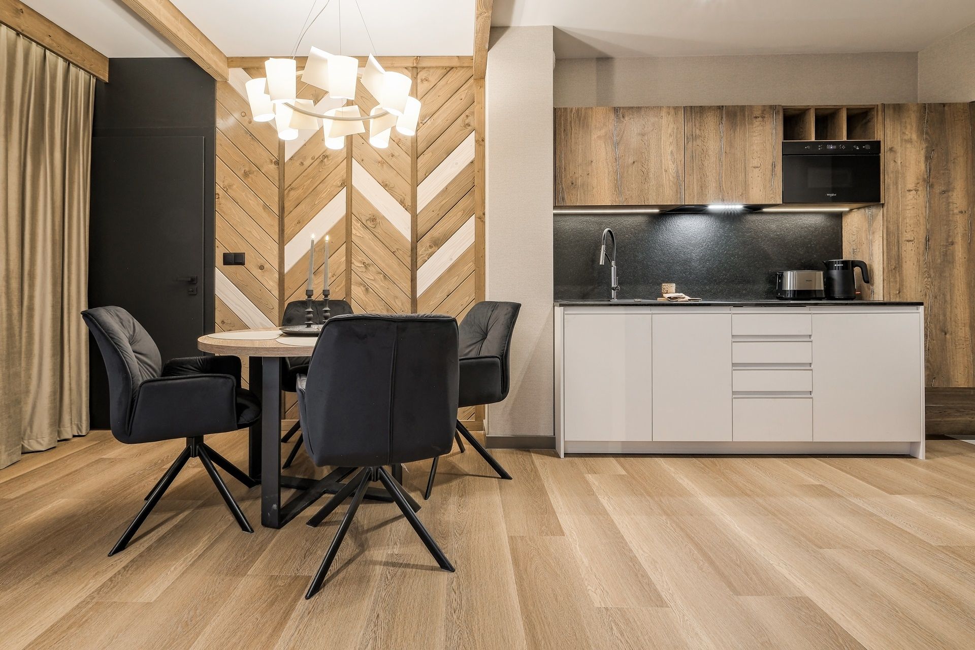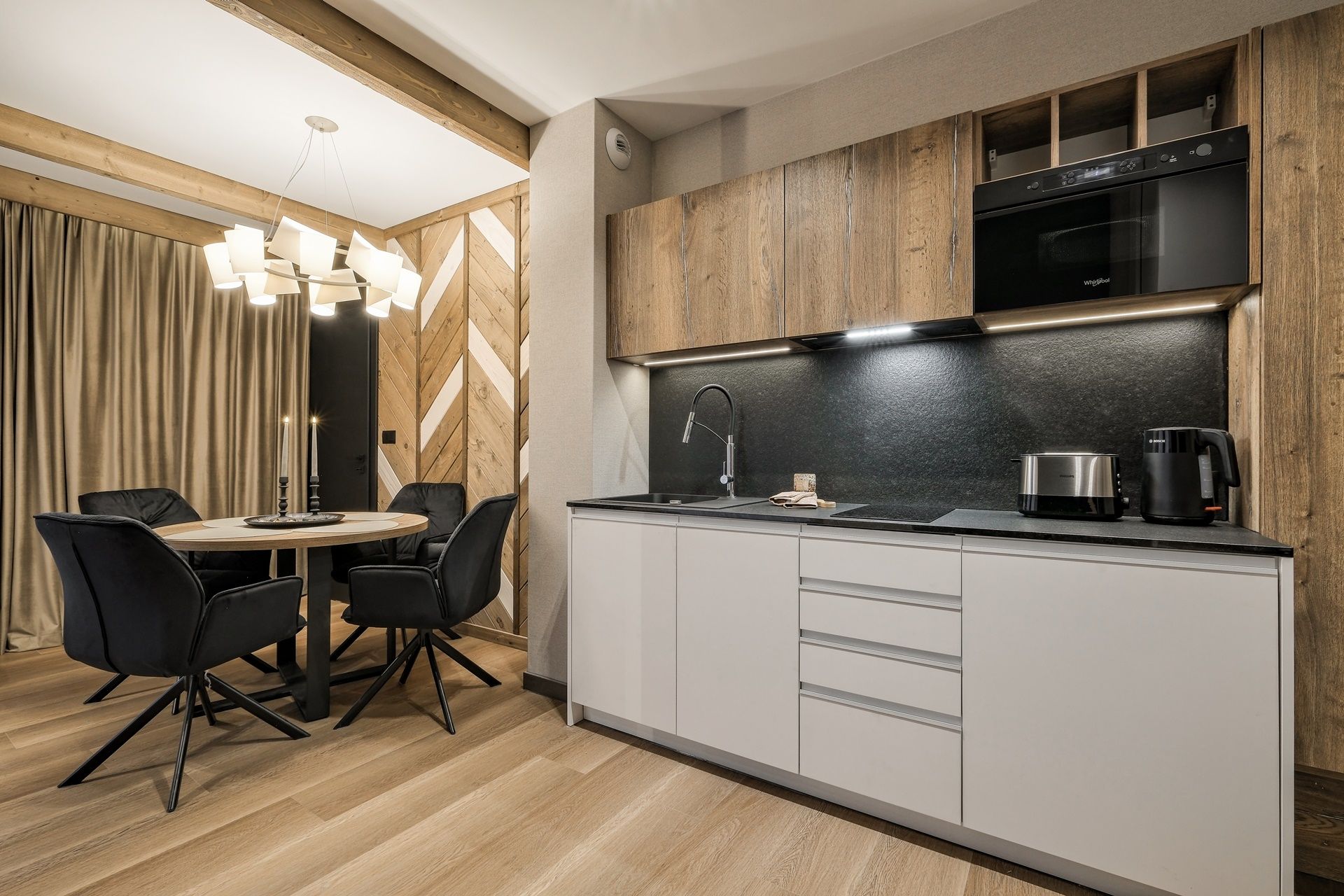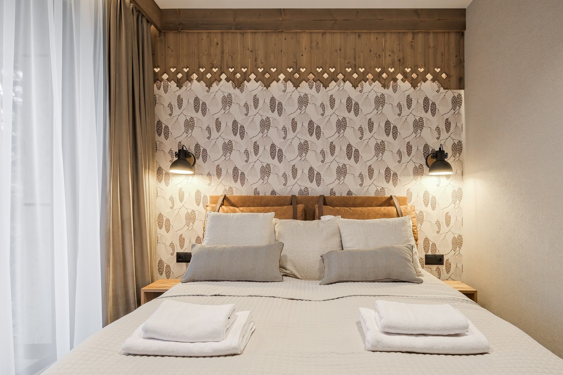 Apartamenty czteroosobowe w kompleksie Białka SKi to propozycja dla osób, które cenią sobie wysoki standard, przestrzeń oraz wnętrza urządzone ze smakiem i nawiązaniem do natury. Starannie zaprojektowane, utrzymane w stonowanej kolorystyce ziemi, z drewnianymi detalami i naturalnymi tkaninami – tworzą atmosferę sprzyjającą relaksowi i wypoczynkowi po dniu pełnym górskich wrażeń.