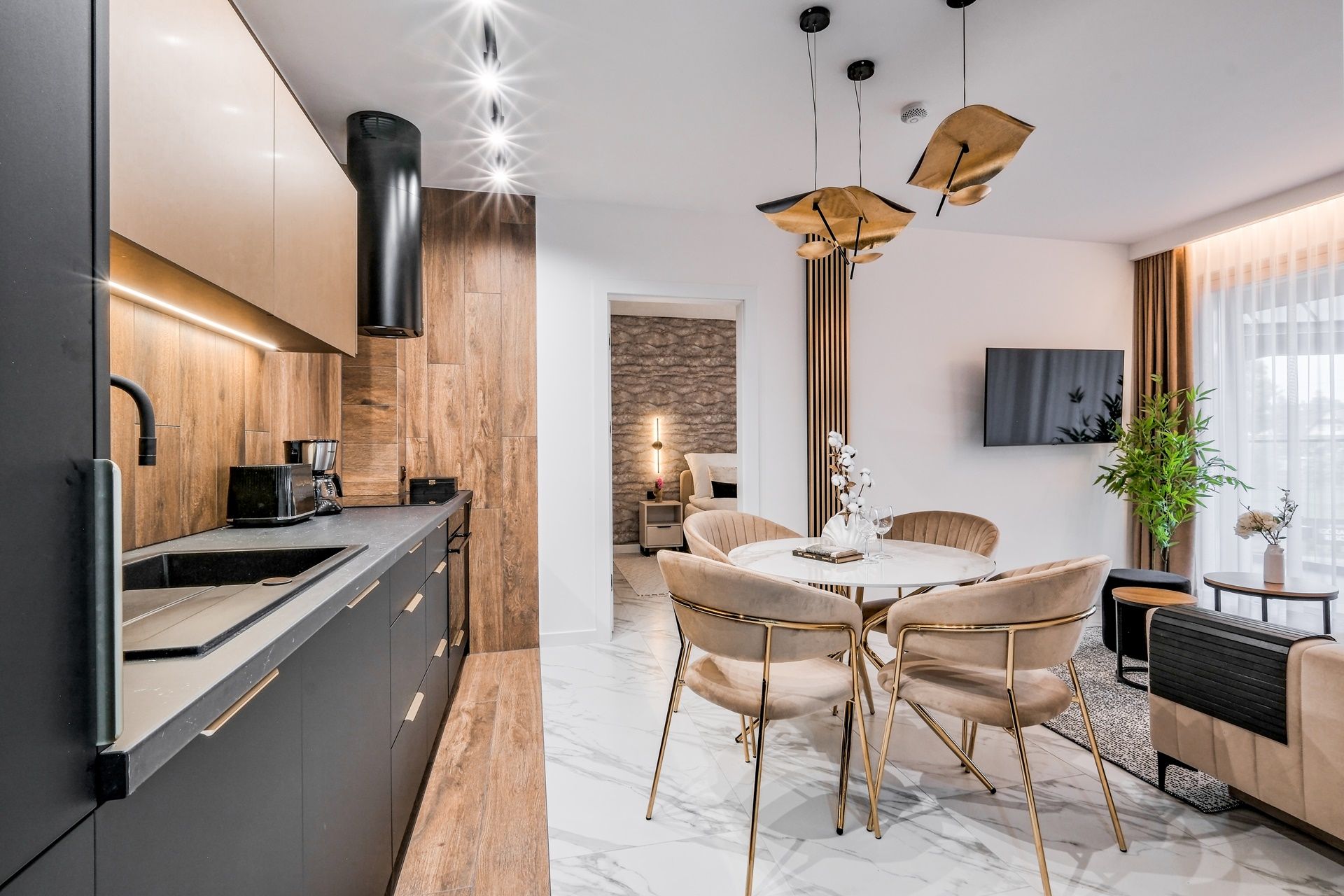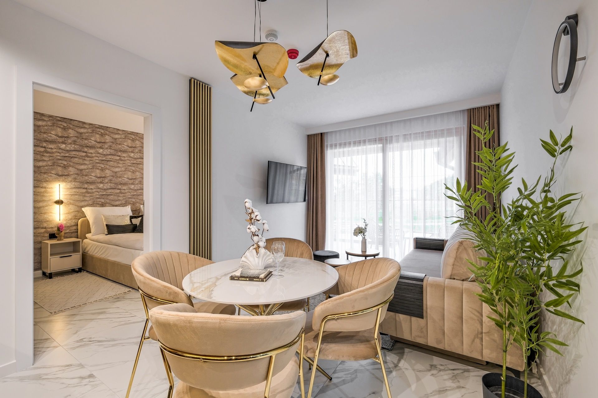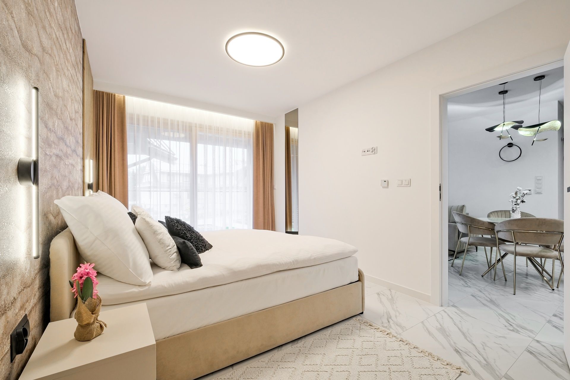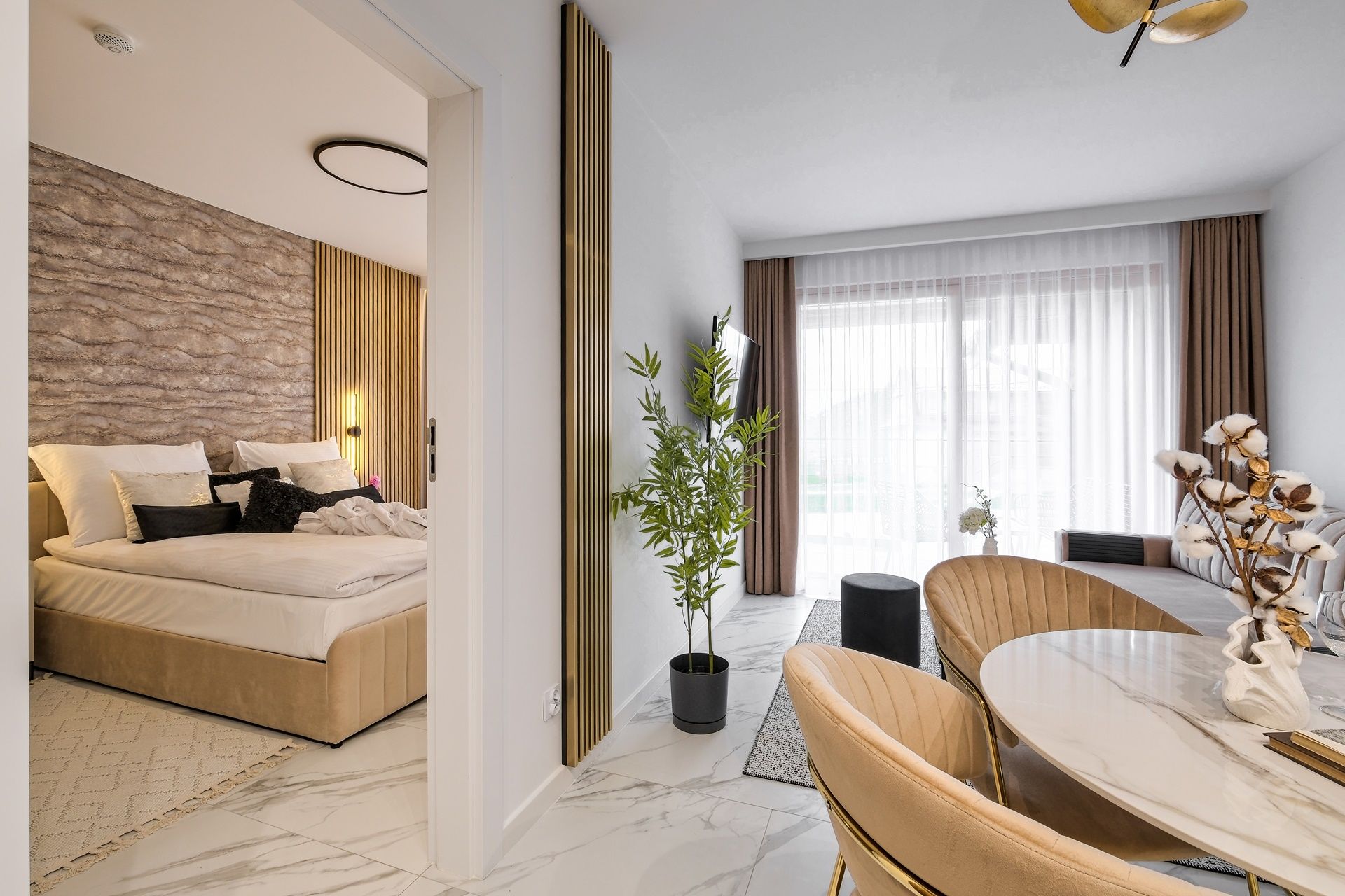 Nasz Apartament to oaza nowoczesności i komfortu, zapewniająca niezapomniane doświadczenia podczas pobytu w Białce Tatrzańskiej. Przekraczając próg apartamentu znajdą Państwo przestrzeń salonu, połączoną z funkcjonalnym aneksem kuchennym, gdzie elegancja i funkcjonalność łączą się w harmonijną całość. Przestronny salon zachęca do relaksu po intensywnym dniu, a w pełni wyposażony aneks kuchenny umożliwia przygotowanie potraw w dowolnej chwili. Apartament składa się również z przytulnej sypialni, zapewniającej spokojny sen i pełen wypoczynek. Łazienka urządzona w nowoczesnym stylu jest miejscem relaksu i odprężenia.