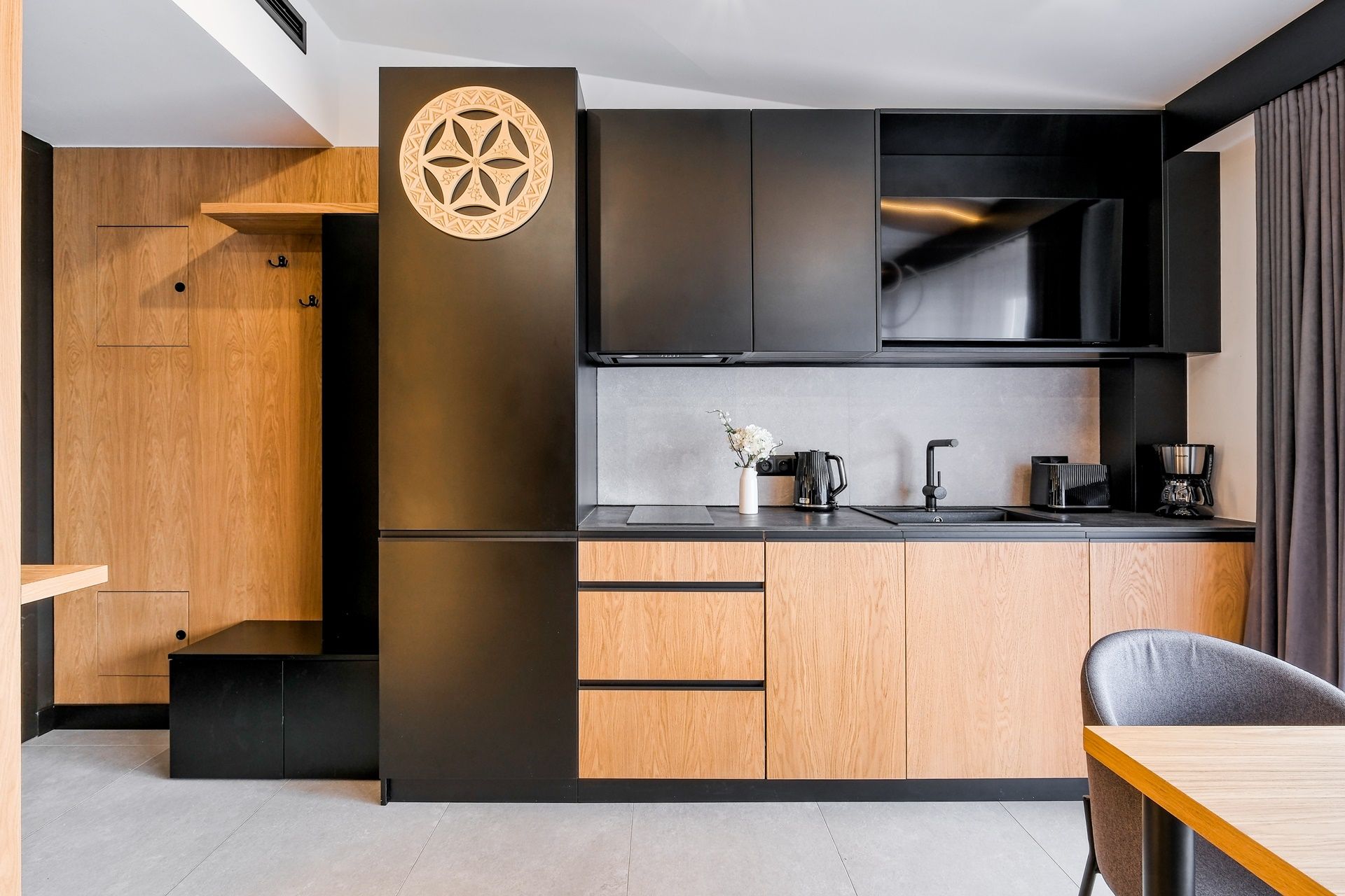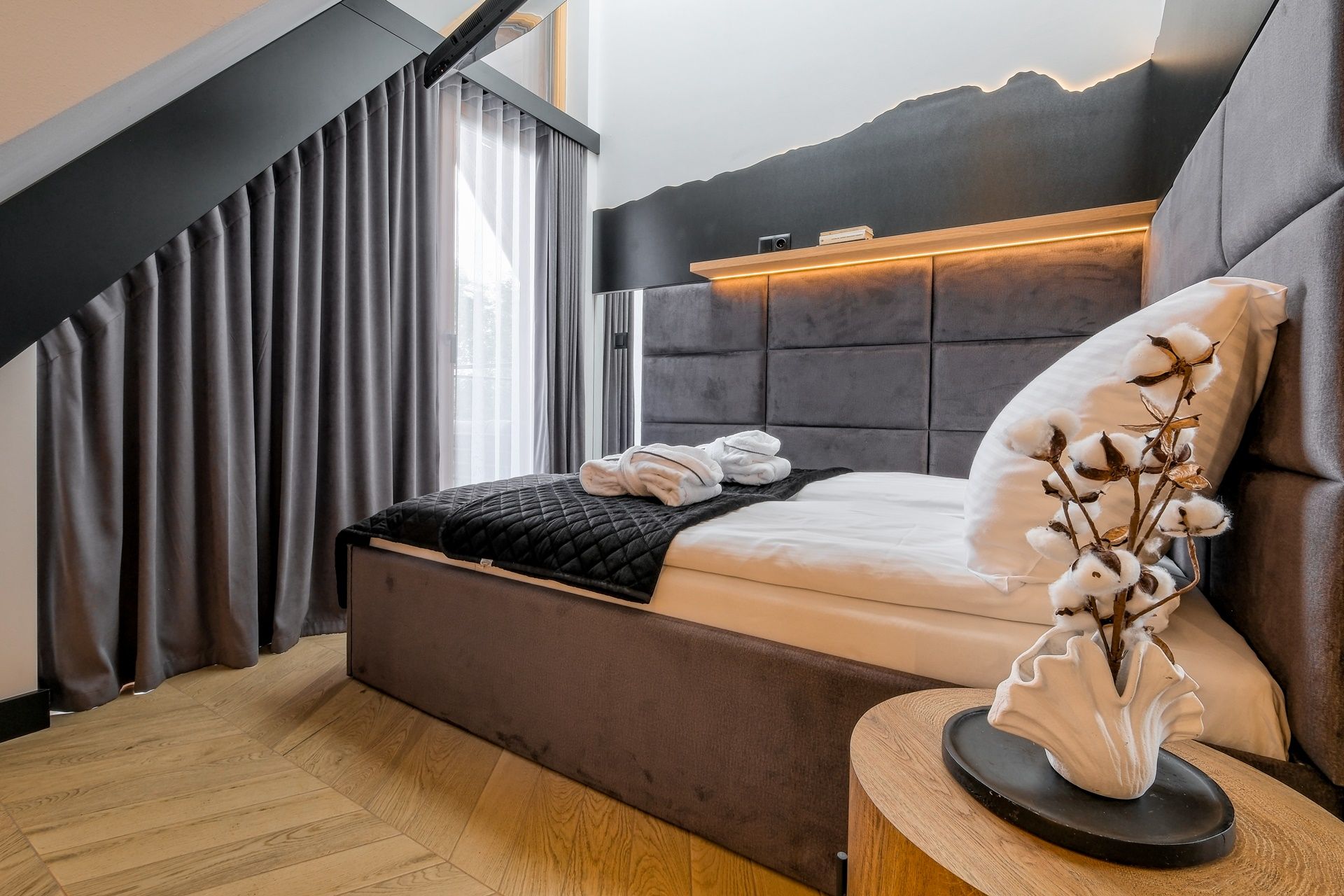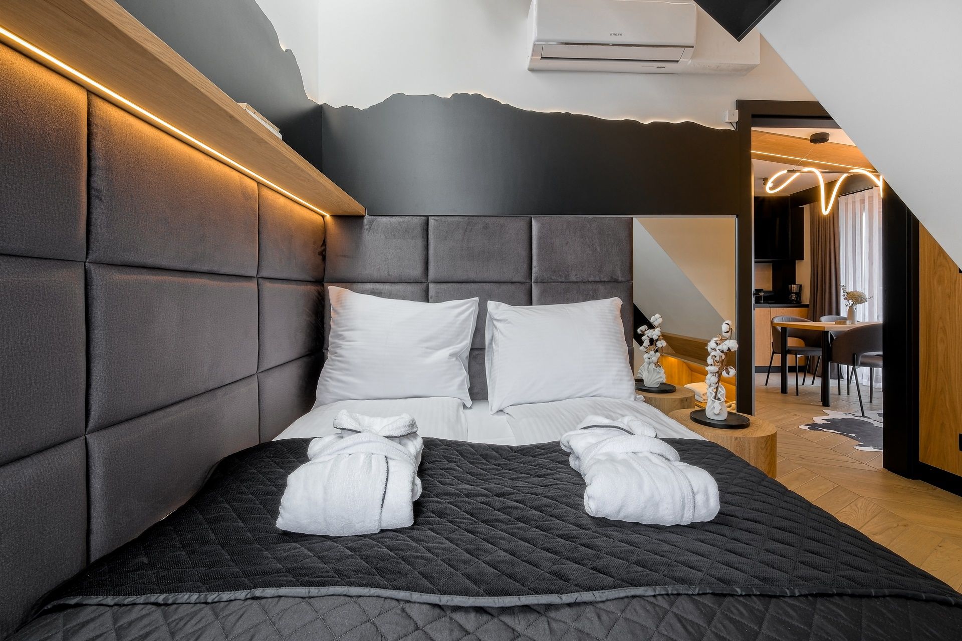 Nasz Apartament to oaza nowoczesności i komfortu, zapewniająca niezapomniane doświadczenia podczas pobytu w Białce Tatrzańskiej. Przekraczając próg apartamentu znajdą Państwo przestrzeń salonu, połączoną z funkcjonalnym aneksem kuchennym, gdzie elegancja i funkcjonalność łączą się w harmonijną całość. Przestronny salon zachęca do relaksu po intensywnym dniu, a w pełni wyposażony aneks kuchenny umożliwia przygotowanie potraw w dowolnej chwili. Apartament składa się również z przytulnej sypialni, zapewniającej spokojny sen i pełen wypoczynek. Łazienka urządzona w nowoczesnym stylu jest miejscem relaksu i odprężenia.