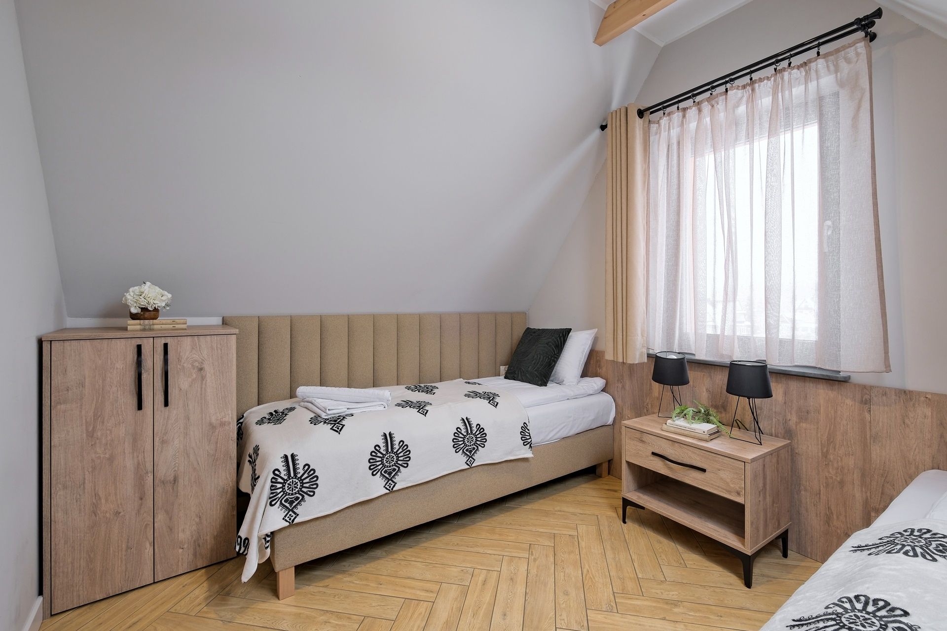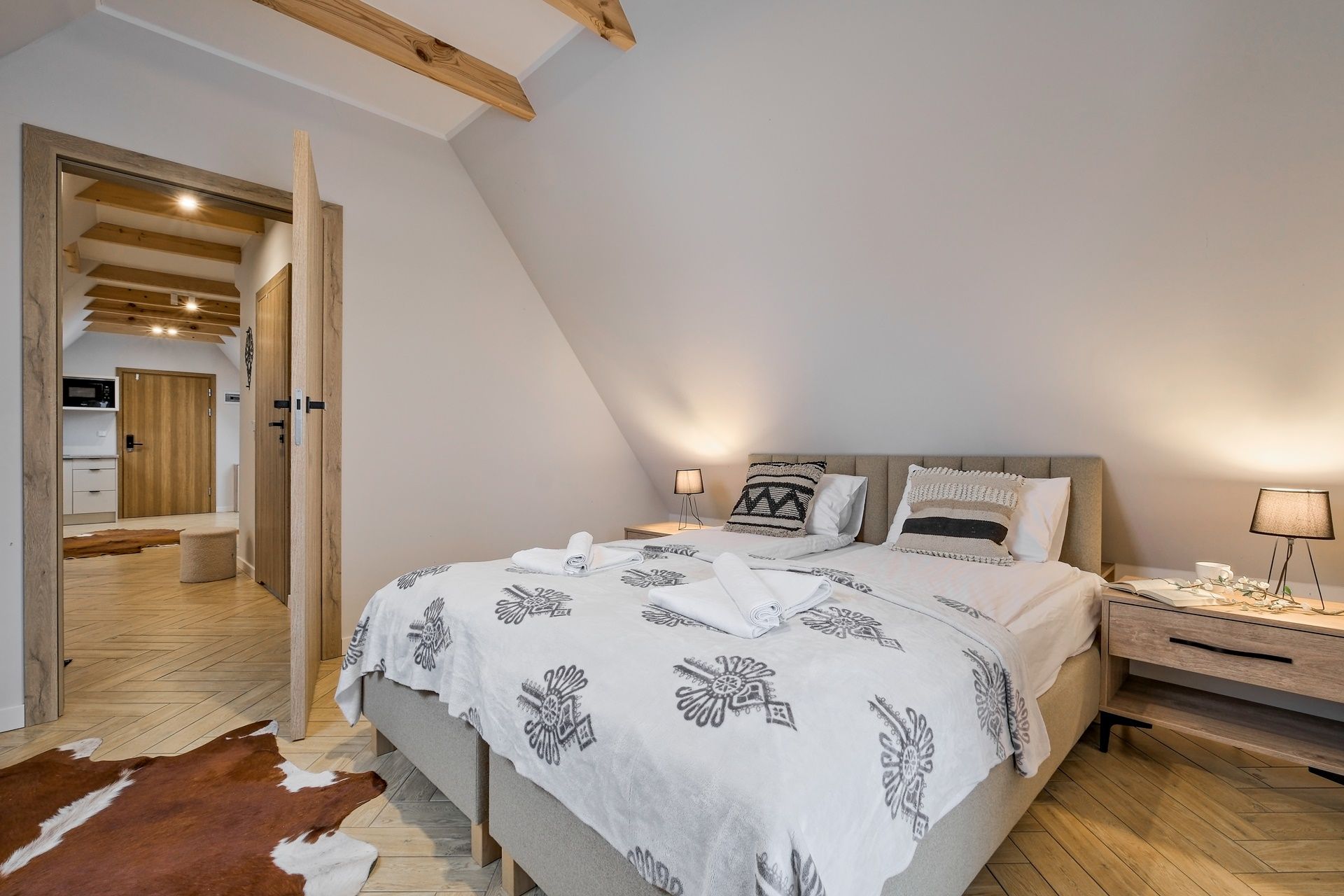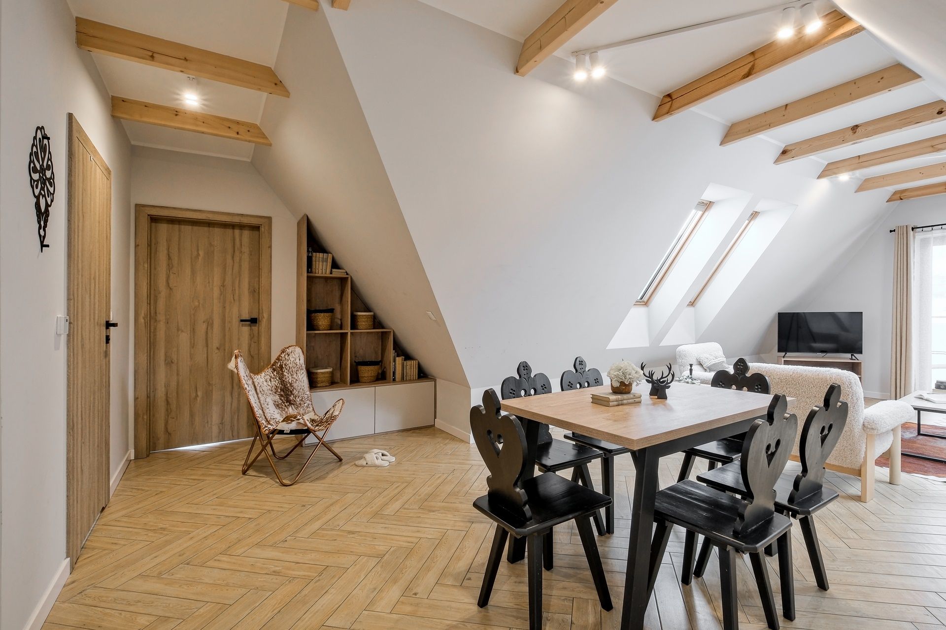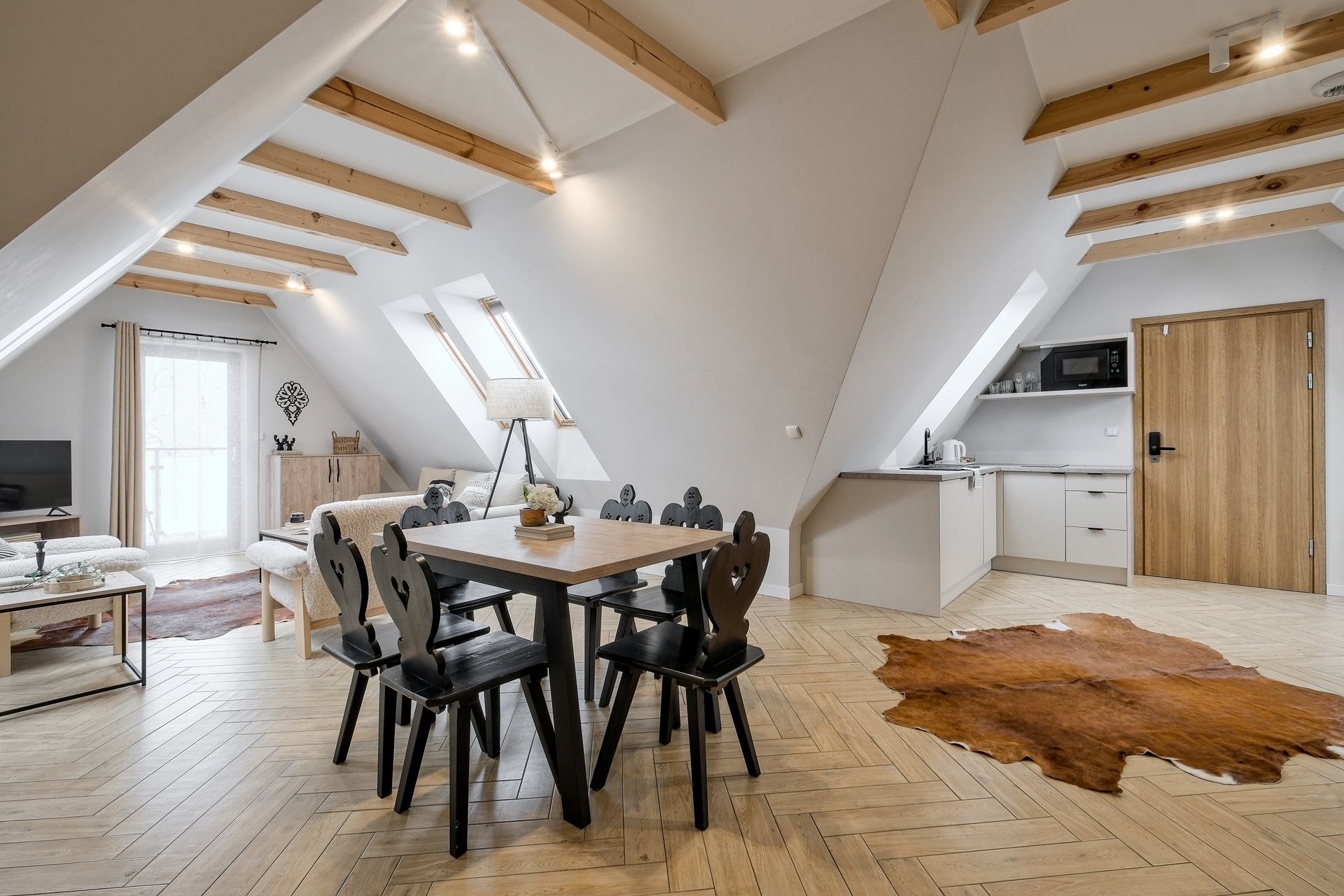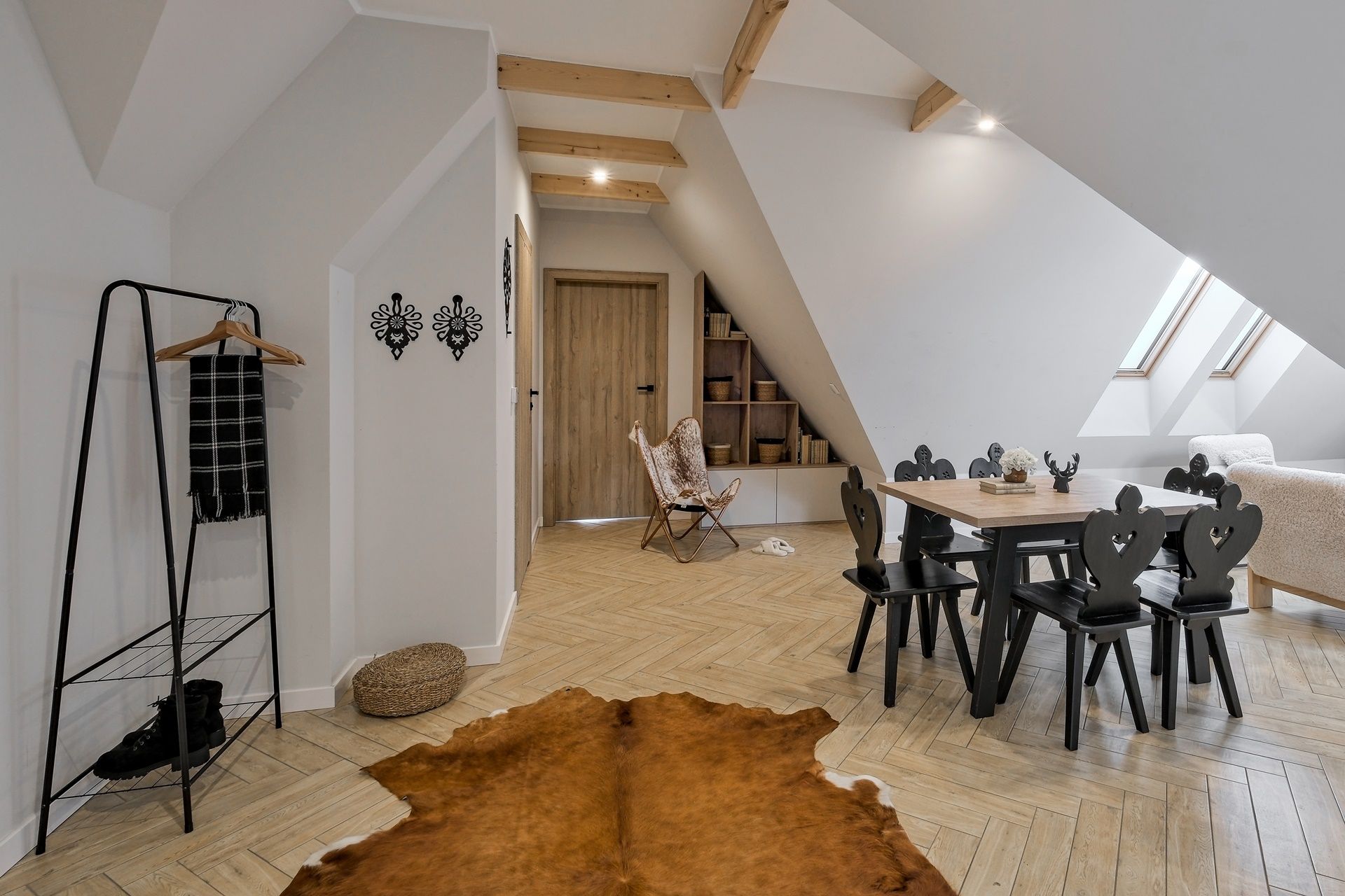 Zapraszamy do wyjątkowego, przestronnego apartamentu utrzymanego w nowoczesnym stylu z wyraźnymi góralskimi akcentami. To idealne miejsce dla rodzin, grup przyjaciół oraz par szukających komfortu, dużej przestrzeni i spokojnego wypoczynku w sercu Podhala.