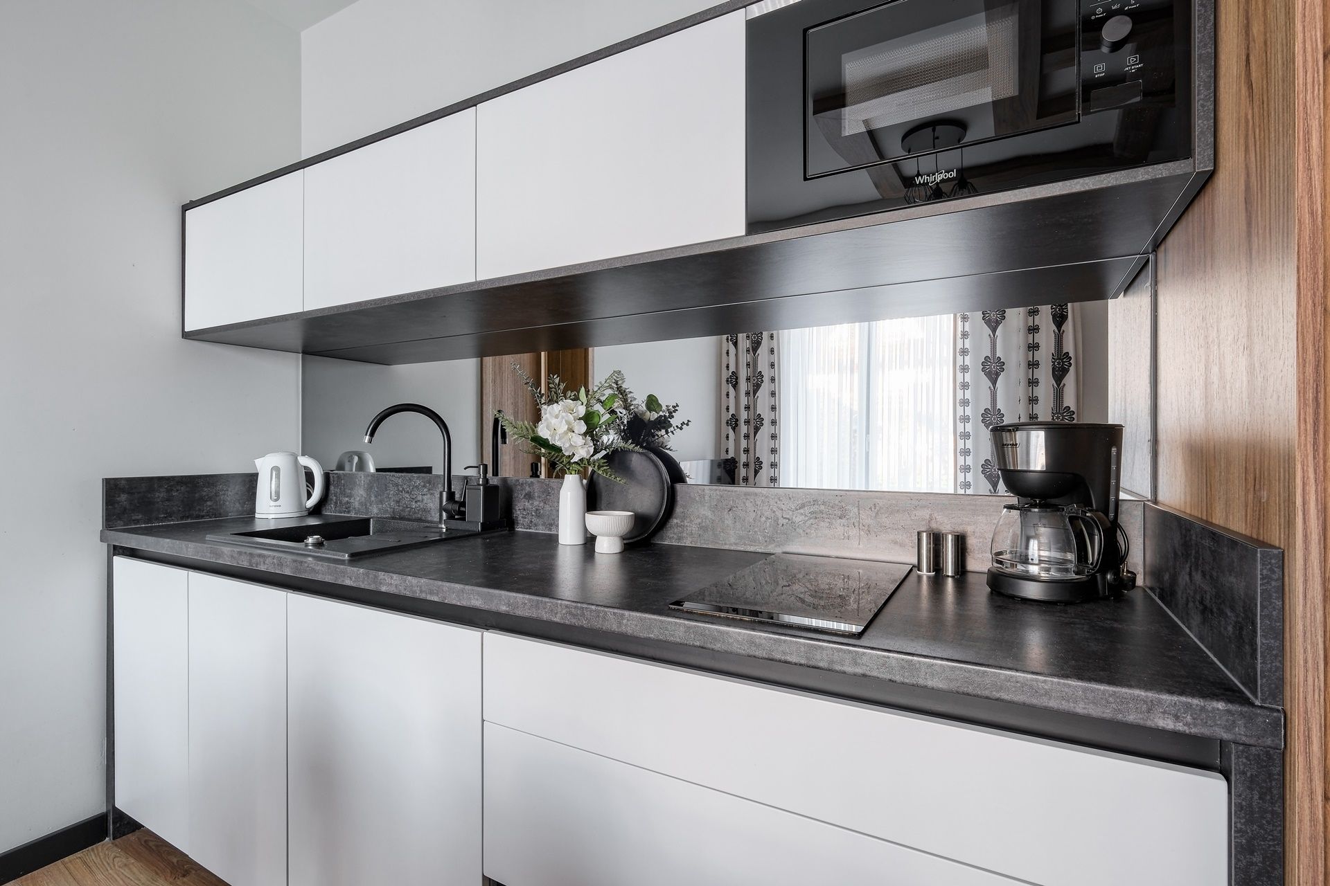 Nowoczesna kuchnia pozwala na komfortowe przygotowywanie posiłków. Do dyspozycji Gości są: