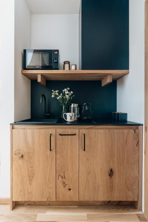 To komfortowy apartament typu studio, idealny dla pary lub dwóch osób dorosłych, ceniących wygodę, prywatność oraz nowoczesne wnętrza. Przestrzeń o powierzchni 23 m² obejmuje strefę sypialnianą z dużym łóżkiem podwójnym, funkcjonalny aneks kuchenny oraz oddzielne pomieszczenie, w którym znajduje się umywalka oraz toaleta.